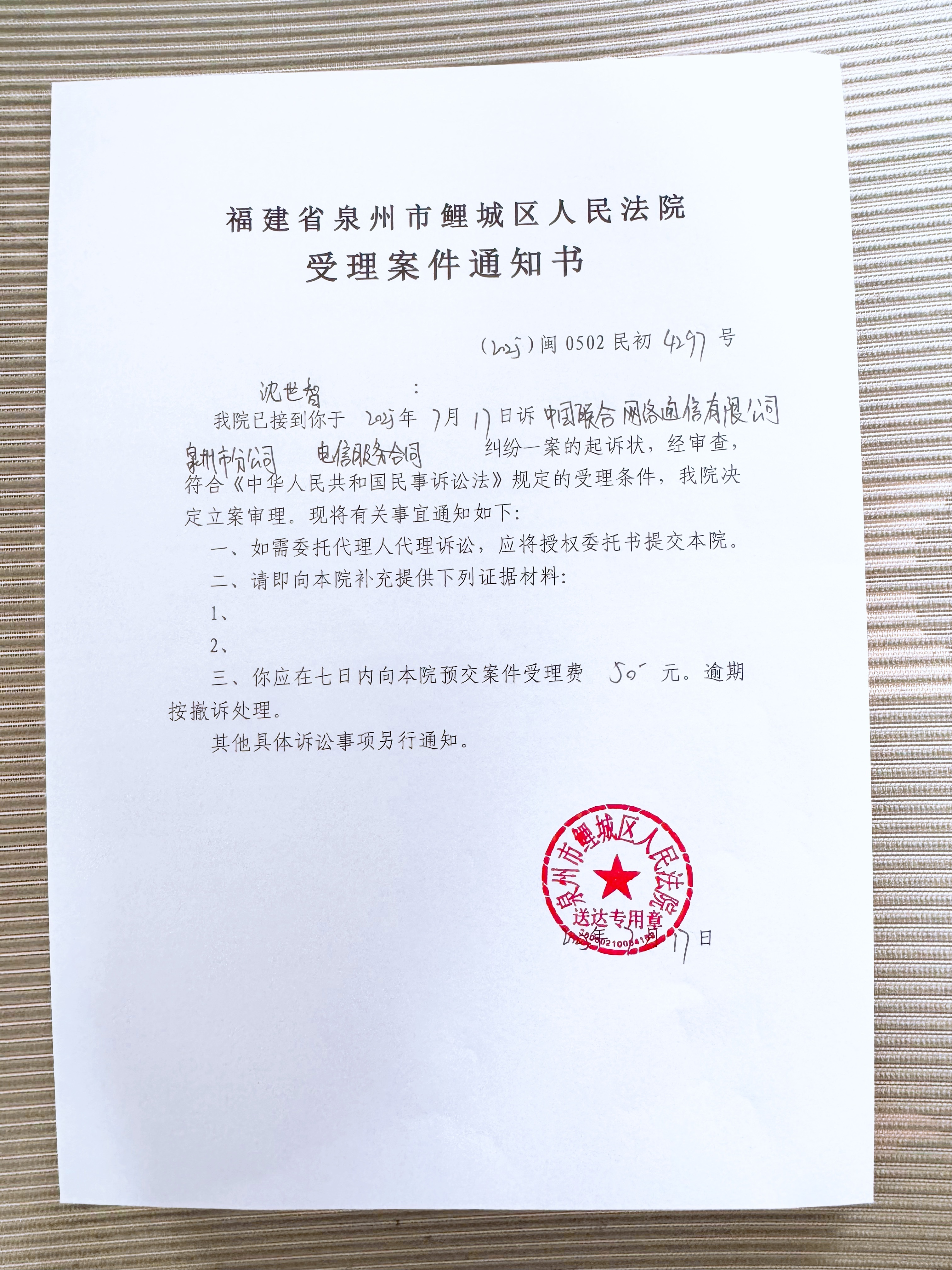 【后续】 在泉州联通回复信访以后,我起诉了。目前已经立案。